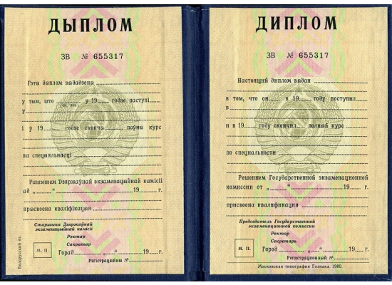 Покупая диплом о высшем образовании Белоруссии 1970 - 1993 гг. в Компании «EXPRESS-Дипломы», вы можете быть уверены в его достоверности и соответствии государственным нормам и требованиям. Мы гарантируем, что наши Диплом о высшем образовании Белоруссии 1970 - 1993 гг. заполняются по учебному плану нужного учебного заведения на нужный год окончания, делается всё по уставу.
