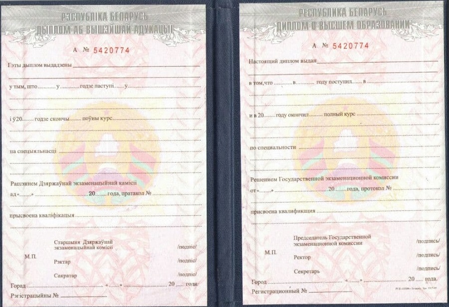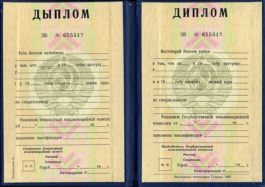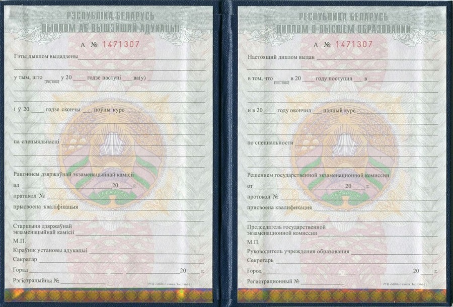 Образцы дипломов ВУЗа Белоруссии: