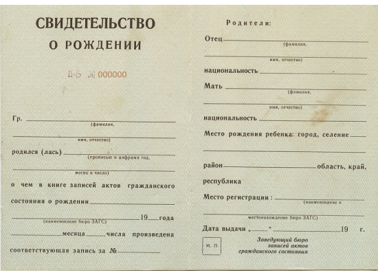 - свидетельство о рождении СССР 1940 - 1949 гг. любого года выпуска, включая времена СССР – а дополнительно к нему может прилагаться список предметов и оценок, которые можно выбрать по вашему желанию;