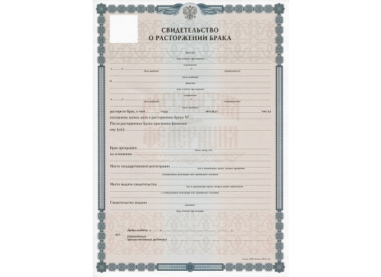 Свидетельство о расторжении брака 2019 - 2026 гг.