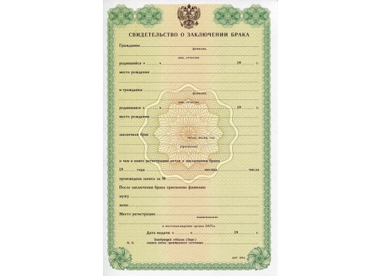 Купить свидетельство о заключении брака 1993 -1997 гг.