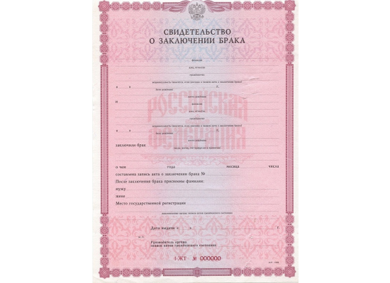 Купить свидетельство о заключении брака 1998 - 2018 гг.